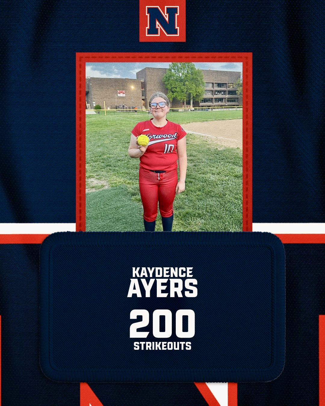 APRIL 15: MILESTONE ALERT: SHOUT OUT to Norwood's Kaydence Ayers for notching her 200th career strikeout for the Lady Indians softball squad! She accomplished the milestone in a doubleheader sweep of Clark Montessori on April 13.