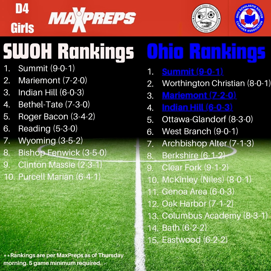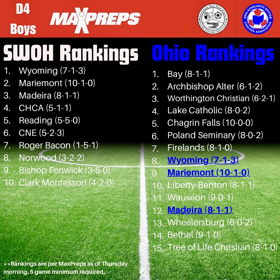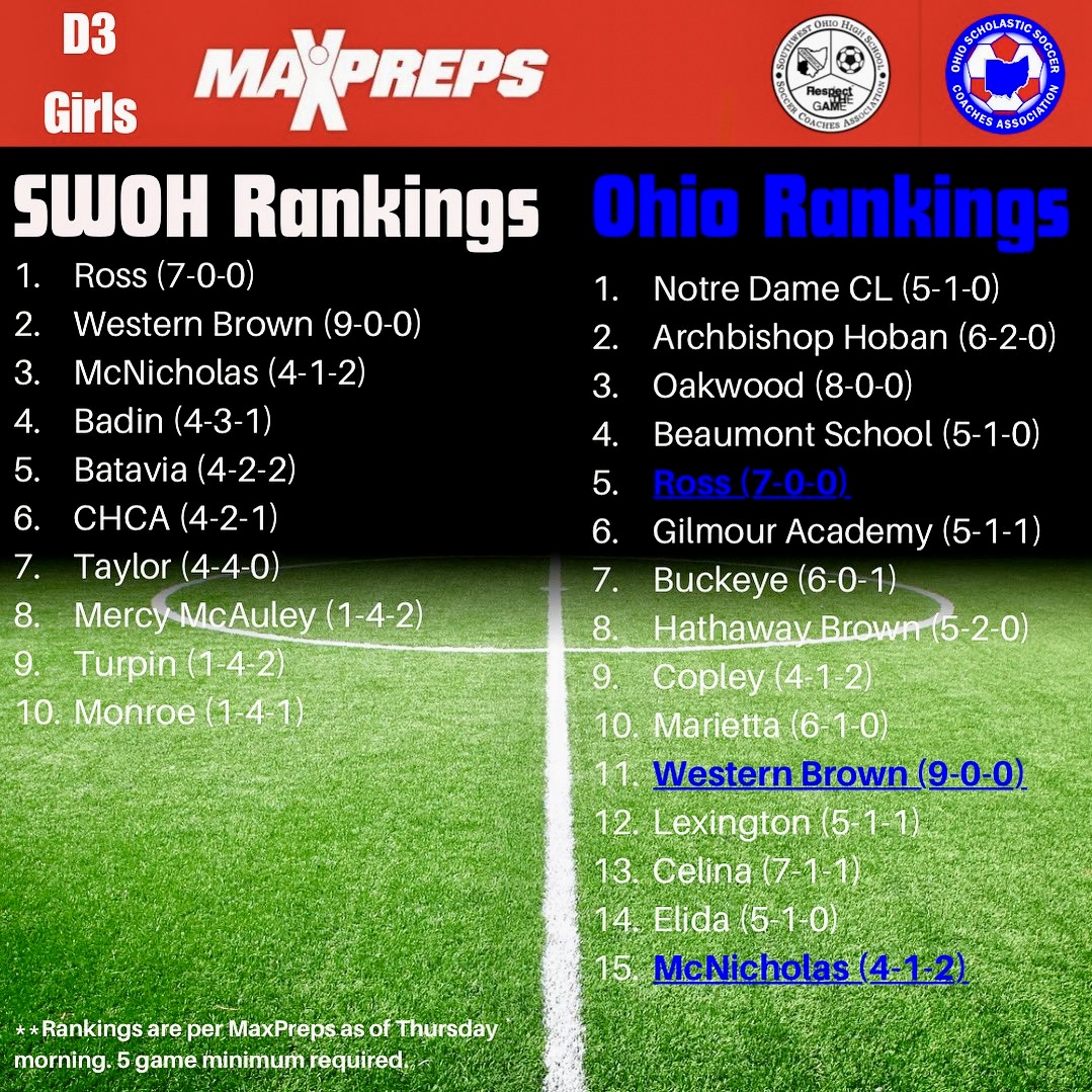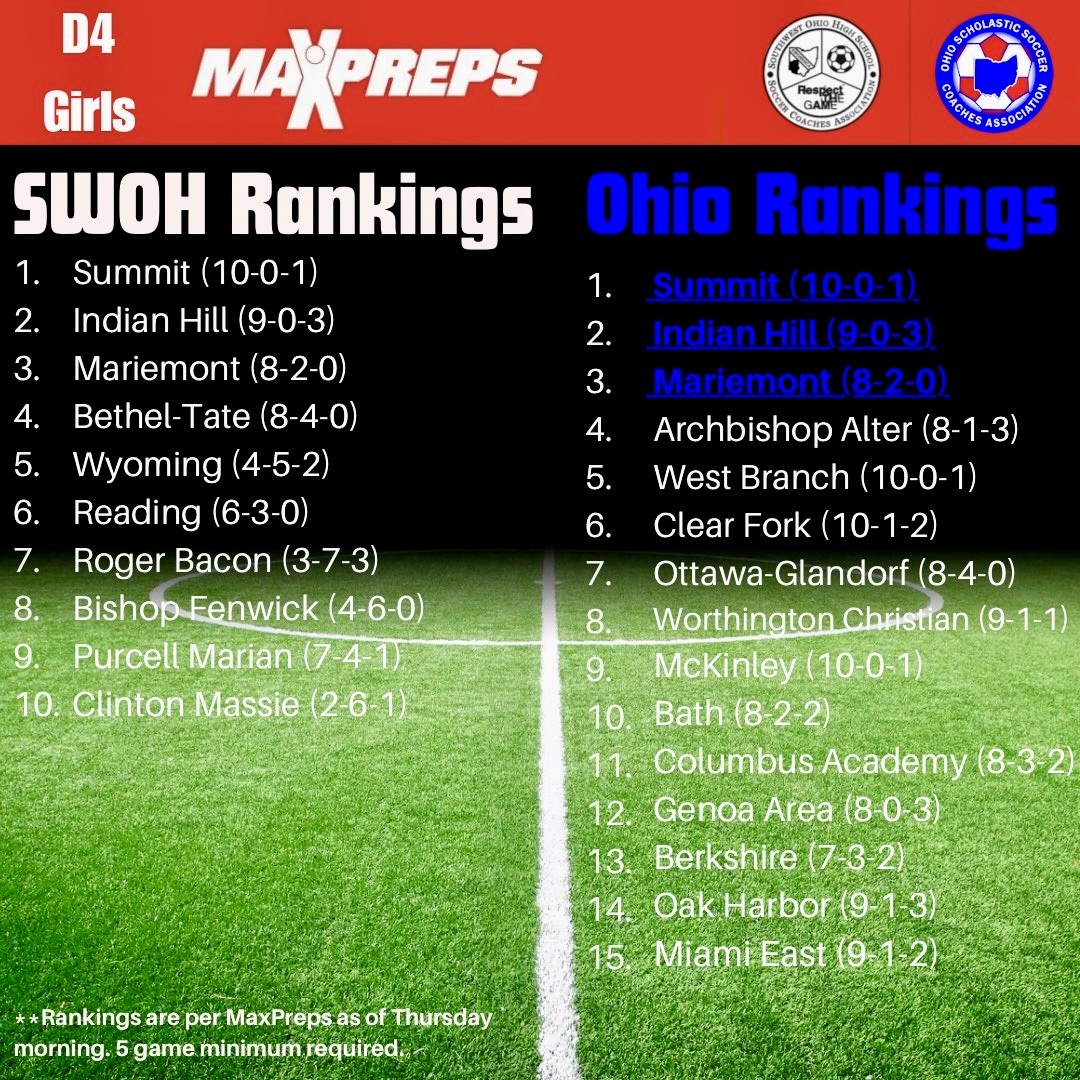 September 20: This most recent Southwest Ohio High School Soccer Coaches Association coaches polls are out!