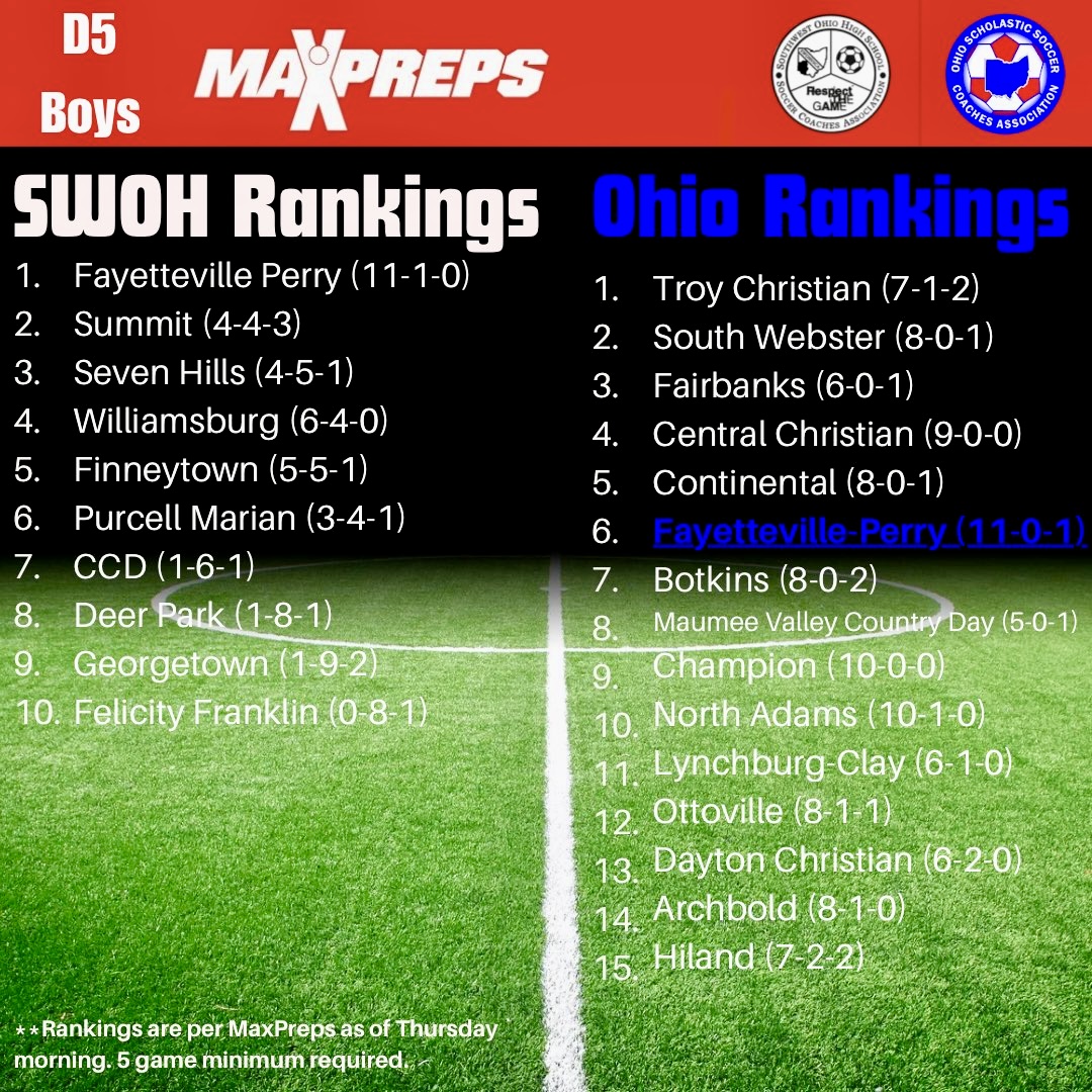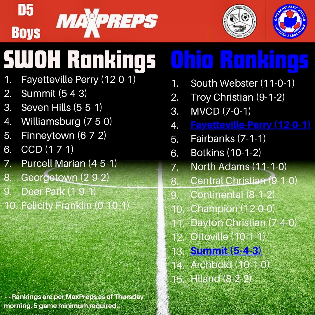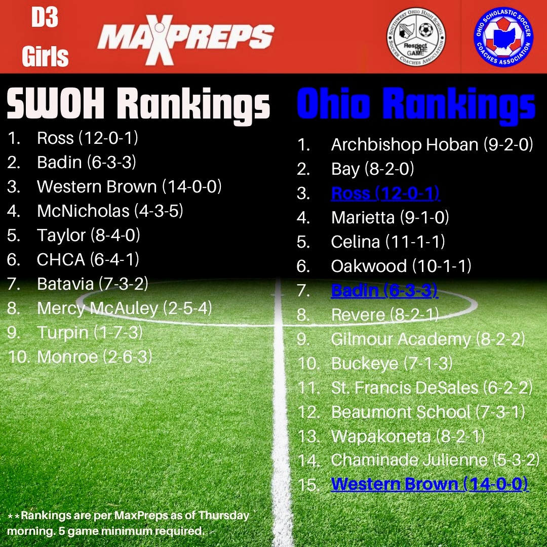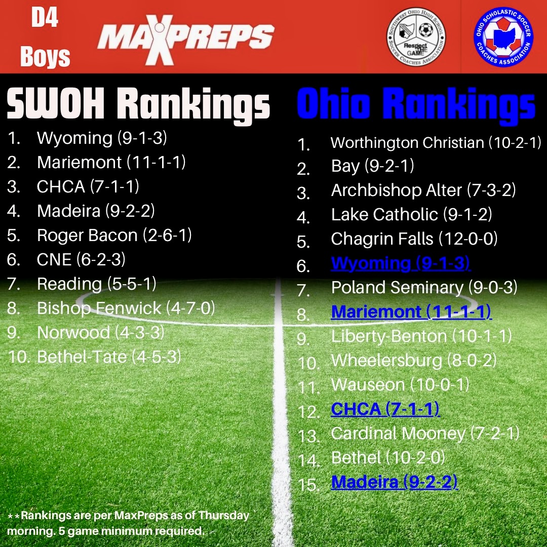 September 20: This most recent Southwest Ohio High School Soccer Coaches Association coaches polls are out!