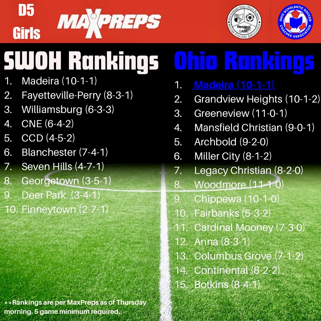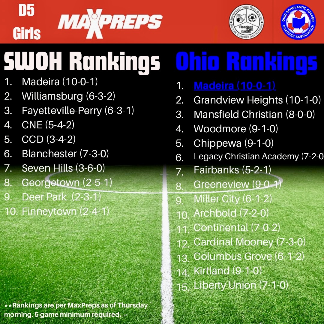 September 14: Here are the latest Southwest Ohio High School Soccer Coaches Association's weekly polls ...