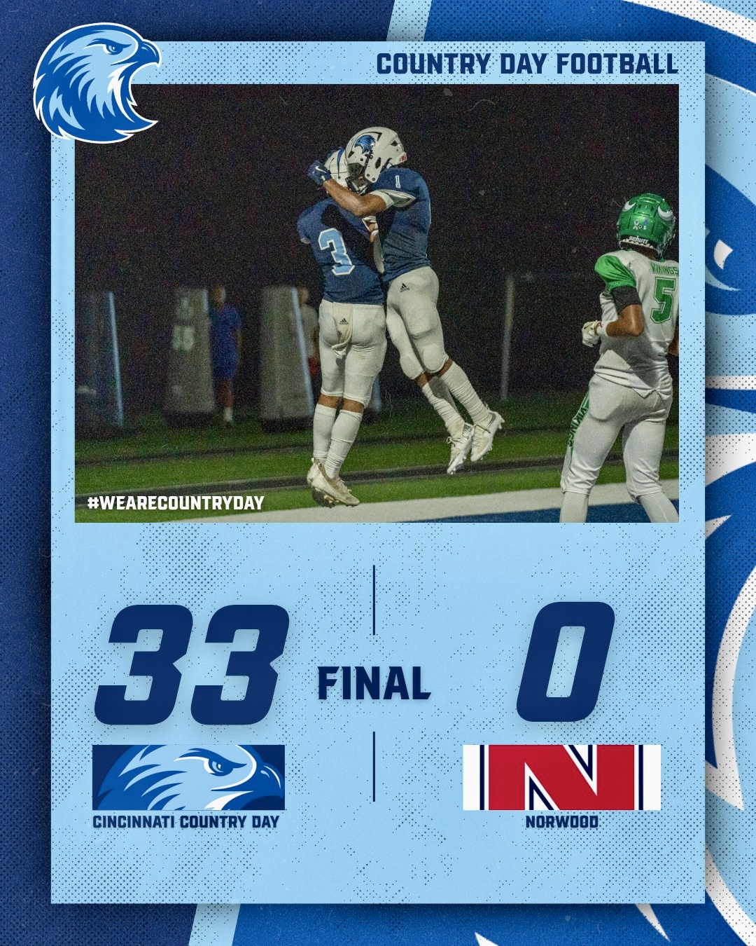 Cincinnati Country Day 33, Norwood 0 (recap HERE)